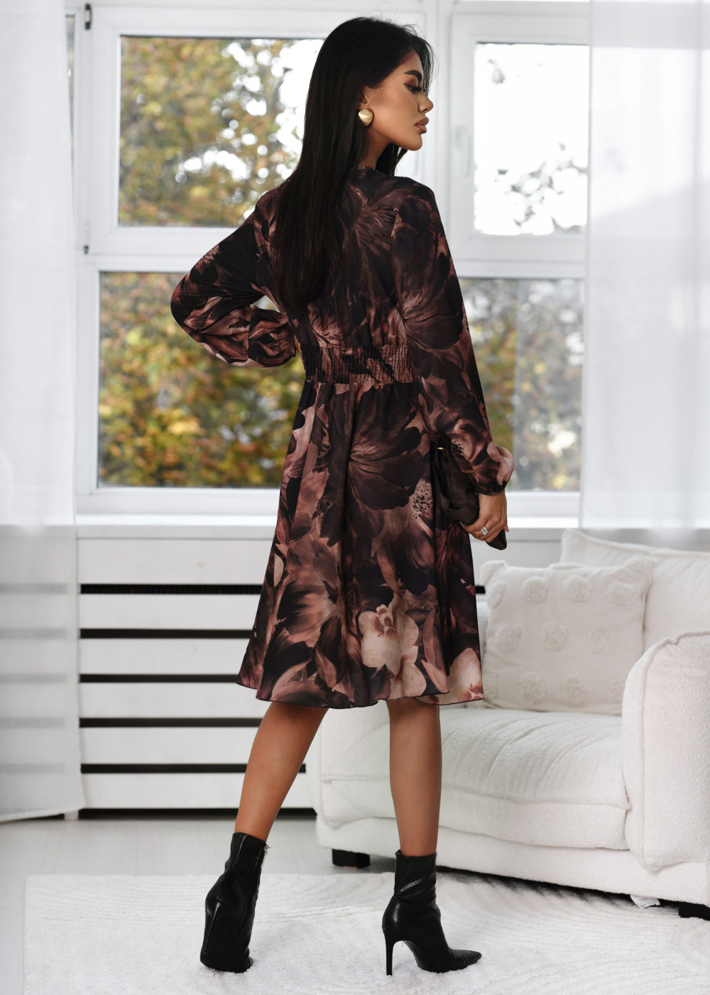 Sukienka z guziczkami Erika Brązowe Kwiaty