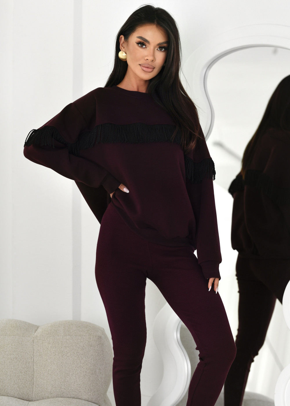 Komplet dresowy z frędzlami Soffi Burgundowy