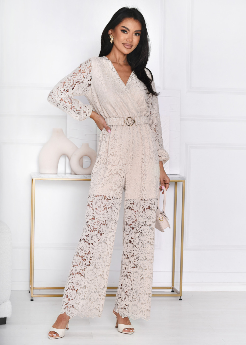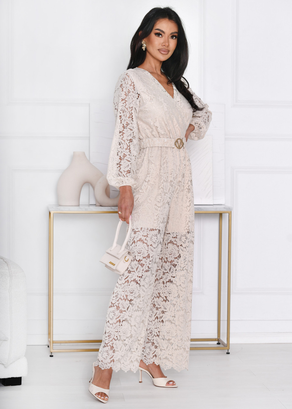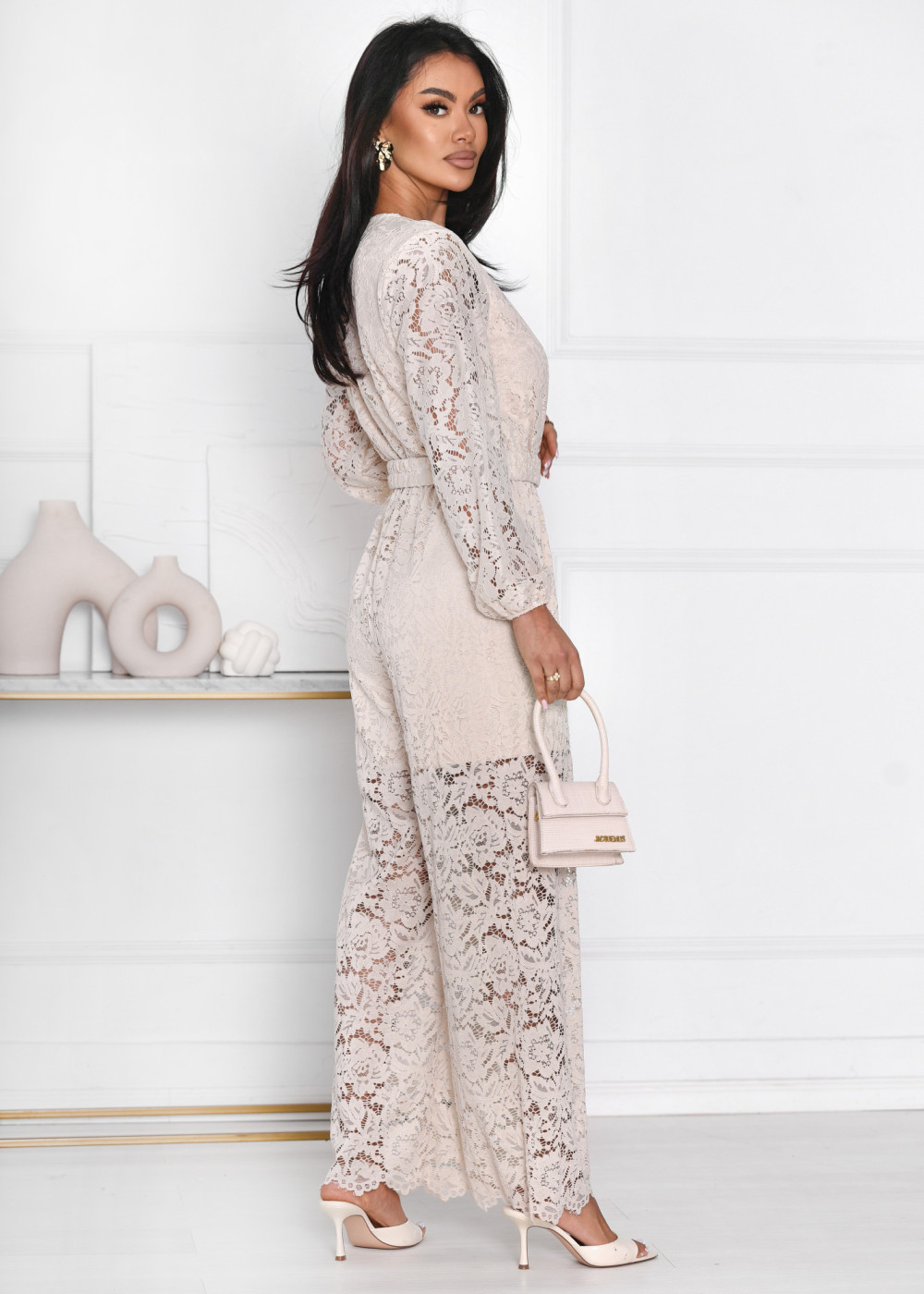 Kombinezon koronkowy długi Nicole Beż